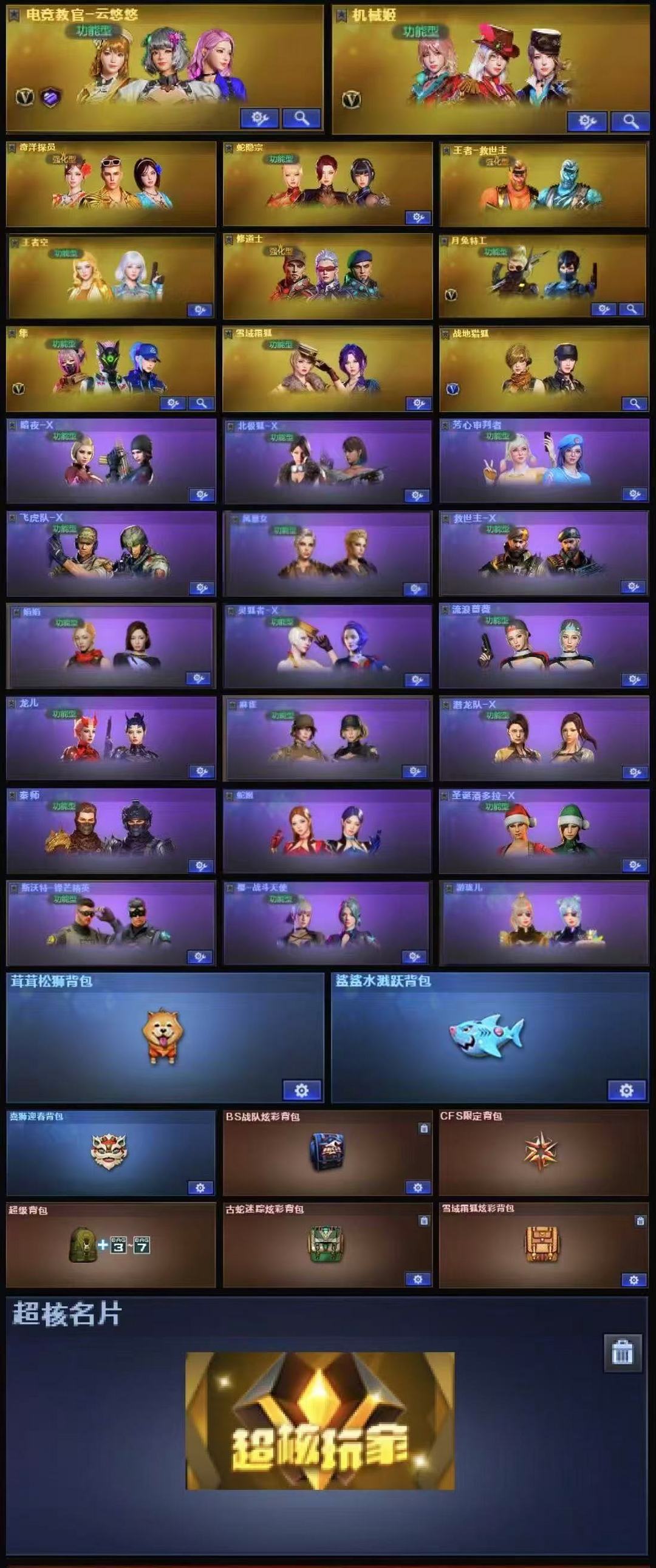 限制: 租号1次及以上 |装备描述:本账号已经过虚拟财产认证,请各位科技大神高抬贵手。如果账号因租客恶意导致封禁,我们可以找平台索要个人信息照价赔偿。谢谢合作 超核玩家+哔哩哔哩名片+全网最低888限量幻神皮肤光海夜阑+幻神CFS2022电流骇客+传说幽瞳+传说辉光+传说幽冥+金色蔷薇威猛悍鲨+MAC10千针棘鲨+白虎茸茸松狮+茸茸小松狮+USP铃狮子送福+M4A1小神龙+王者星霆+4皮巅峰荣耀流光秘银夜芒苍灵运输船裁决音效卡+双皮白虎冠军之虎暗星+G36C幻影破浪逐光+金色蔷薇冠军+王者破空枪刃+白鲨柯尔特+玄豹手枪+炽芒蝶刃白鲨冠军+冠军之刃+跳跳鲨+宙斯全套+云悠悠+机械姬+王者空+月兔特工+隼【74v】