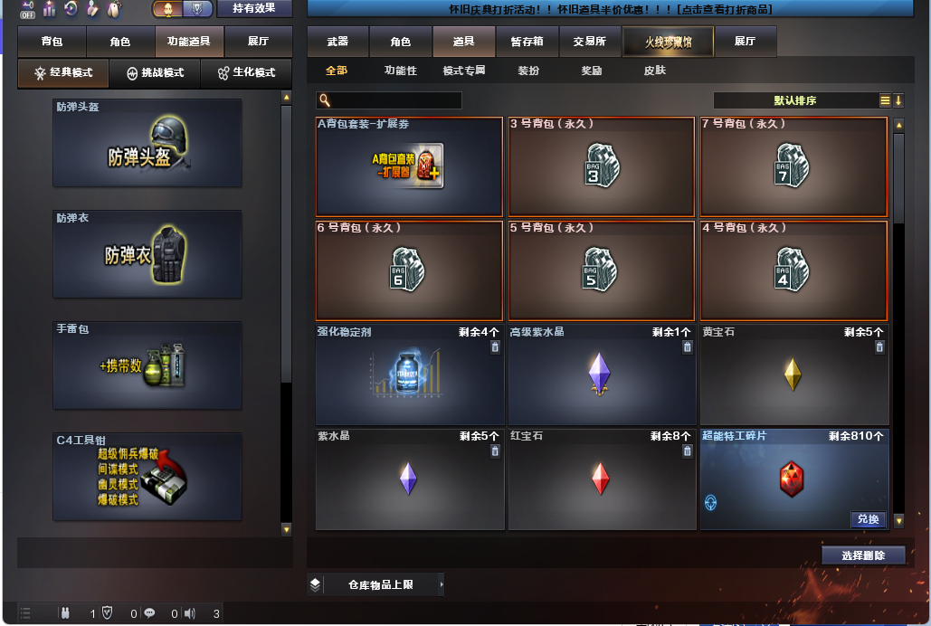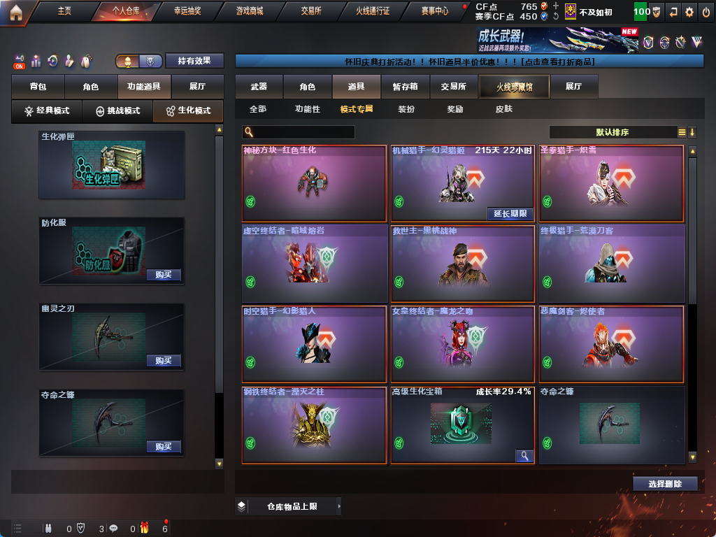 生化炽芒蝶刃♉沙漠玫瑰♉四防生化背包♉斯泰尔蝴蝶♉幻神可排位♉6烈龙4盘龙♉不退包满榴弹♉无6盘6烈