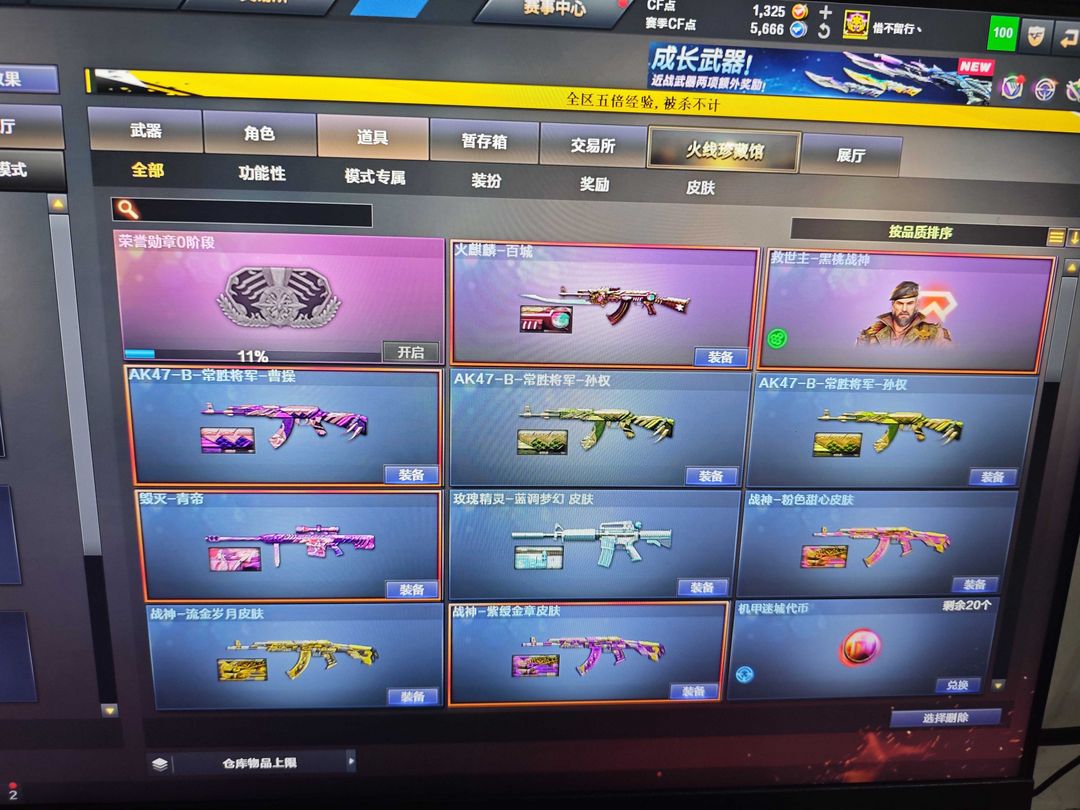 装备描述:王者武器:炫金毁灭;王者之击-觉醒版;王者之怒-觉醒版 英雄武器:M4A1-黑骑士;屠龙;麒麟刺;AK47-火麒麟;Barrett-毁灭;Barrett-极光;沙鹰-修罗;加特林-炼狱;M4A1-雷神;M14EBR-玄武;机械迷城-穹宇;AK-47-猩红传说;Barrett-暗月传说;QBZ03-金色蔷薇;M4A1-英雄-能量核心;修罗-年鹏;HK417-朱雀;擎天;AK47-B-常胜将军;AK47-B-身先士卒;黑骑士-海王;AK47-B-战神;AK47-B-战士 主武器:火麒麟-能量核心;M4A1-雷神;源-裁决;源·毁灭;AK-47-机械魔影;动力CPW-摸金校尉;斯泰尔-正义;M4A1-万圣节2020;魂·毁灭-秦师;M4A1-英雄-能量核心;御·千变-孔明;源·雷神;源·火麒麟;MK5-黄蜂;源·天启;魂·黑骑士-摸金校尉;源·超新星;SPAS-12-粉红伪装;SPAS-12-卡通;魂·Barrett-朱雀-醒狮;AK-47-蛇姬;源·无影;VEPR-12-金魔;源-金色蔷薇;贝雷塔-李思楠;黑骑士-摸金校尉;超级矮个子-绝迹;御·雷神-葫芦兄弟;FN FAL-小动物;源·猎
