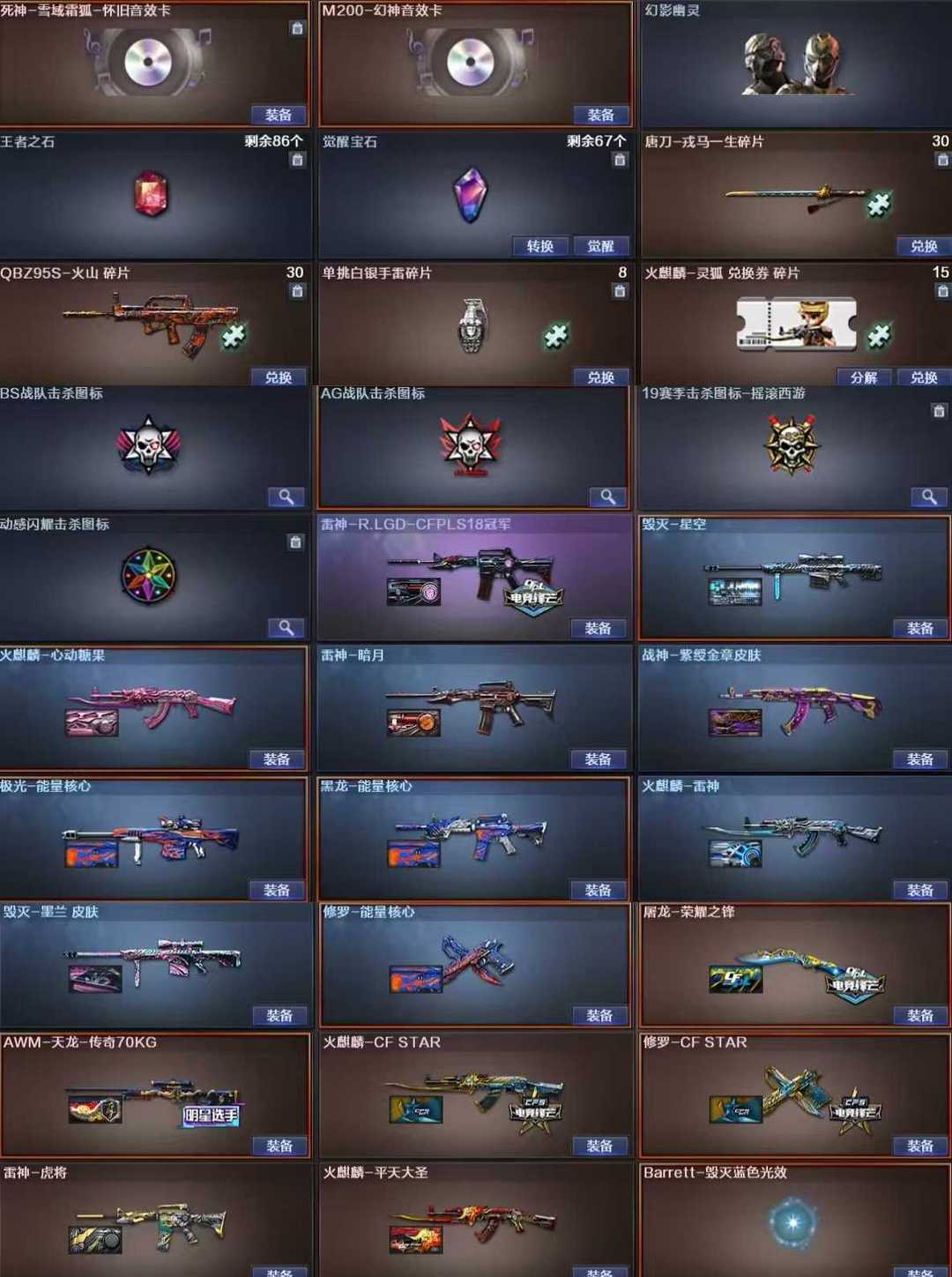 装备描述:毁号,涉及毁坏虚拟财产罪及计算机安全罪,请文明游戏素质游戏,让我们共建美好租号平台 本游戏账号:英雄武器89个 王者武器10个。 装备齐全拥有完美游戏体验。重要的是特殊装备有:M4A1-雷神、AN94-超新星、黑骑士-海王、幻灵之锋、AK47-火麒麟、Scar Light-白虎、烟雾弹-竞技荣光、高爆手雷-竞技荣光、闪光弹-竞技荣光、柯尔特-竞技荣光、擎天-竞技荣光、M200-竞技荣光、USP-雷暴、荣耀世冠-火麒麟、荣耀世冠-柯尔特、荣耀世冠-龙啸、M200-幻神、M4A1-黑骑士、AK47-黑武士、M4A1-黑龙、AWM-天龙、M4A1-雷霆、雷霆之契、雷霆之锋、加特林-炼狱、Barrett-毁灭、QBZ03-金色蔷薇、麒麟刺、火麒麟-绝迹、王者星霆、炫金火麒麟、王者之魄-觉醒版、王者之心-觉醒版、王者之武-觉醒版、王者之怒-觉醒版、炫金雷神、炫金骑士、王者之势-觉醒版、黄金猫猫手套-白鲨、B.C-Axe-CFS、Knife-CFS、枪王之刃、猫猫手套、魂·Barrett-金色蔷薇-蛇姬、魂·QBZ03-金色蔷薇-蛇姬、灵·QBZ03-金色蔷薇-嘉年华、