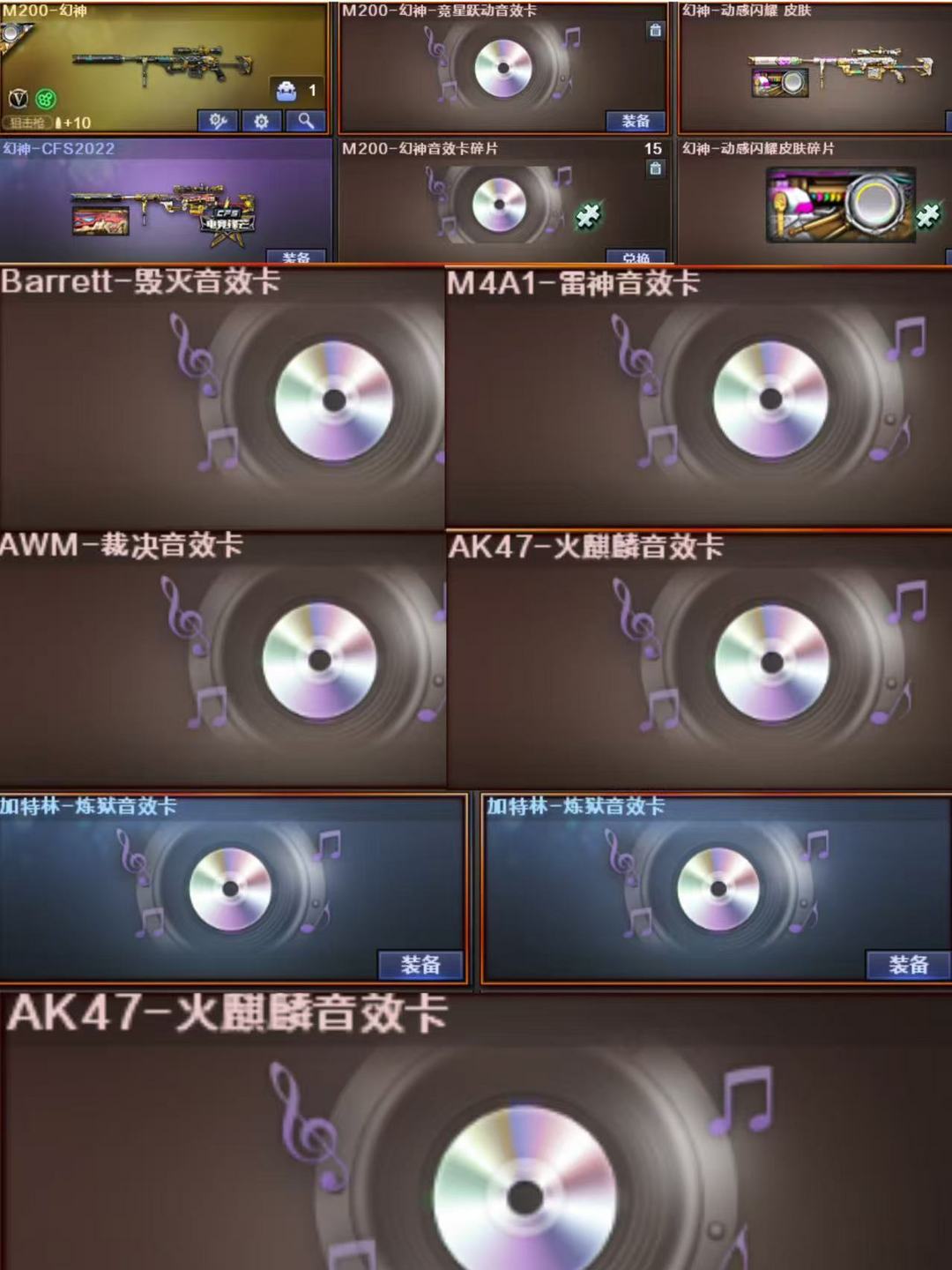 北部极品生化爆破号幻神炽芒碟刃×5王者玄武×2炼狱x4带音效卡狮子6盘6列异变震魔者usp雷暴等等