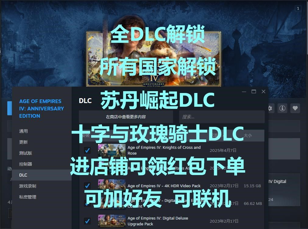 帝国时代4:全国家!东方王朝DLC!十字与玫瑰DLC!苏丹崛起DLC!可玩所有国家!