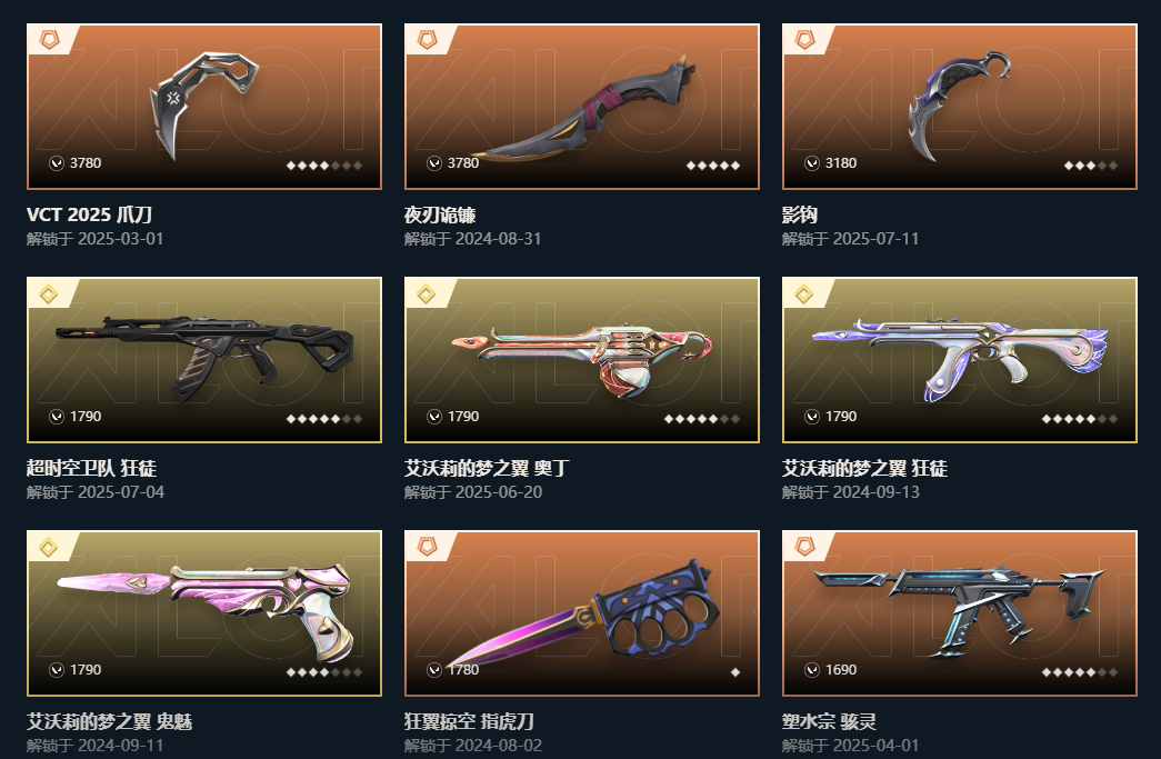 冻结秒解✨艾沃莉梦之翼狂徒✨黯夜怪谈套✨掠夺爪刀/VCT爪刀✨塑水宗/光荣/超时空/显卡离子✨