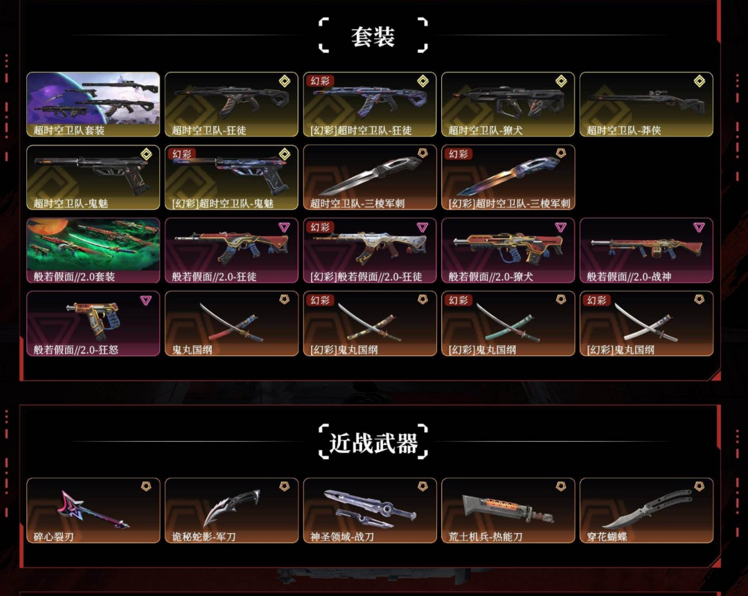 【超时空卫队套装】鬼丸蝴蝶刀⭐AK混沌塑水猫咪盖亚掠夺假面双城⭐魔蛇毁灭幻影⭐暗夜标配天神鬼魅边陲正