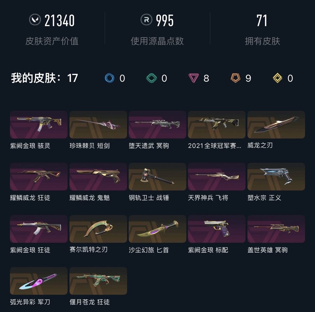 排位可,刀皮有耀鳞威龙,ak有耀鳞威龙、紫金、21冠军、偃月苍龙、堕天加盖世英雄大狙,紫金标配。