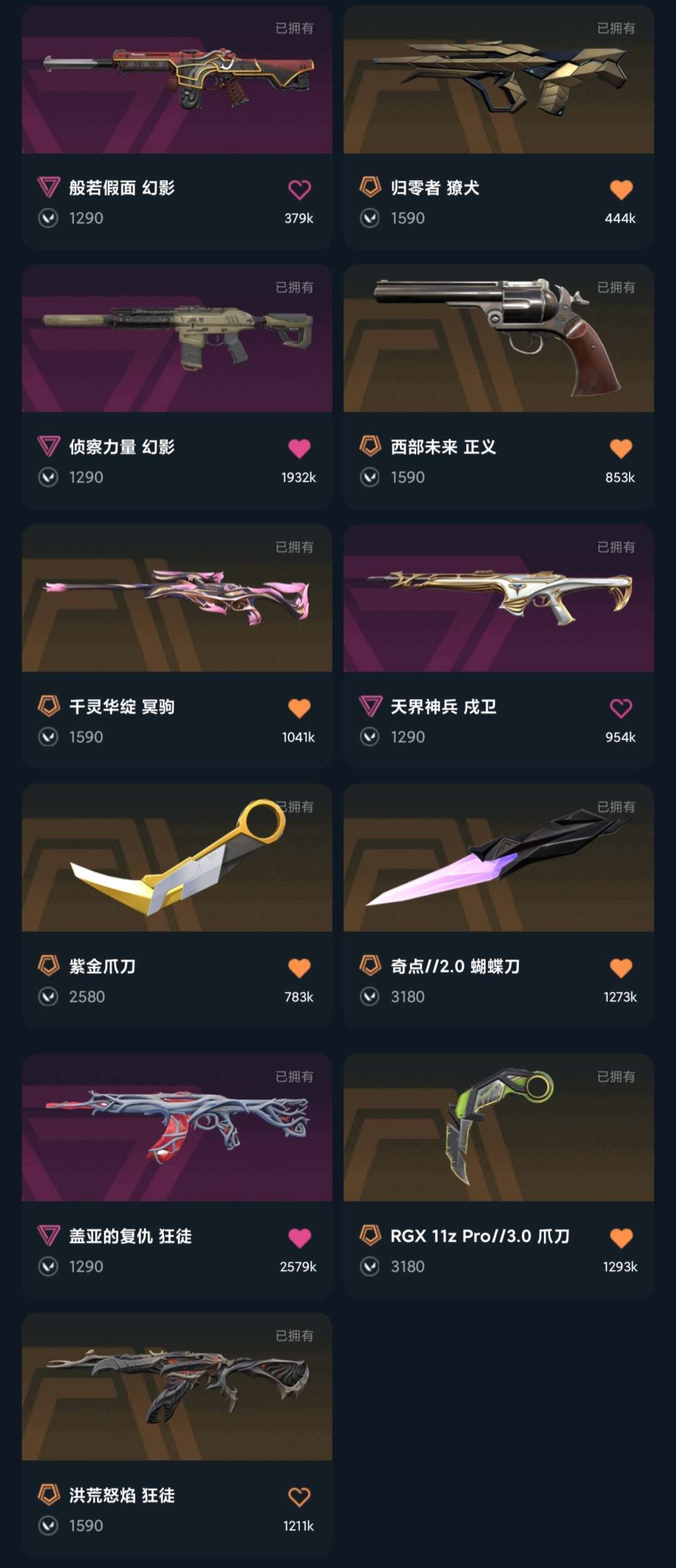 可排❤️紫金显卡爪刀⭐奇点蝴蝶刀⭐侦查鬼面幻影⭐盖亚流脓ak⭐莲花狙⭐天界鬼魅戍卫⭐西部正义⭐