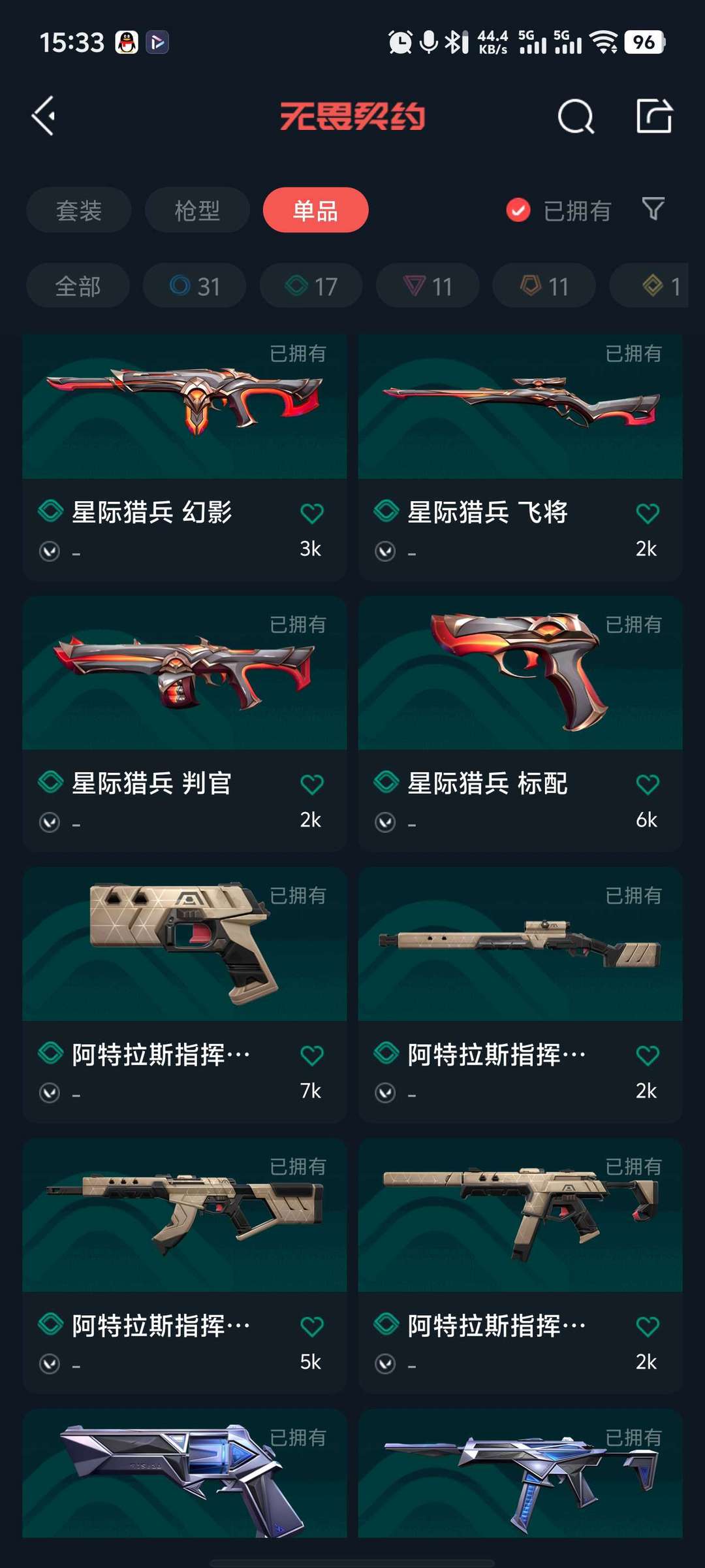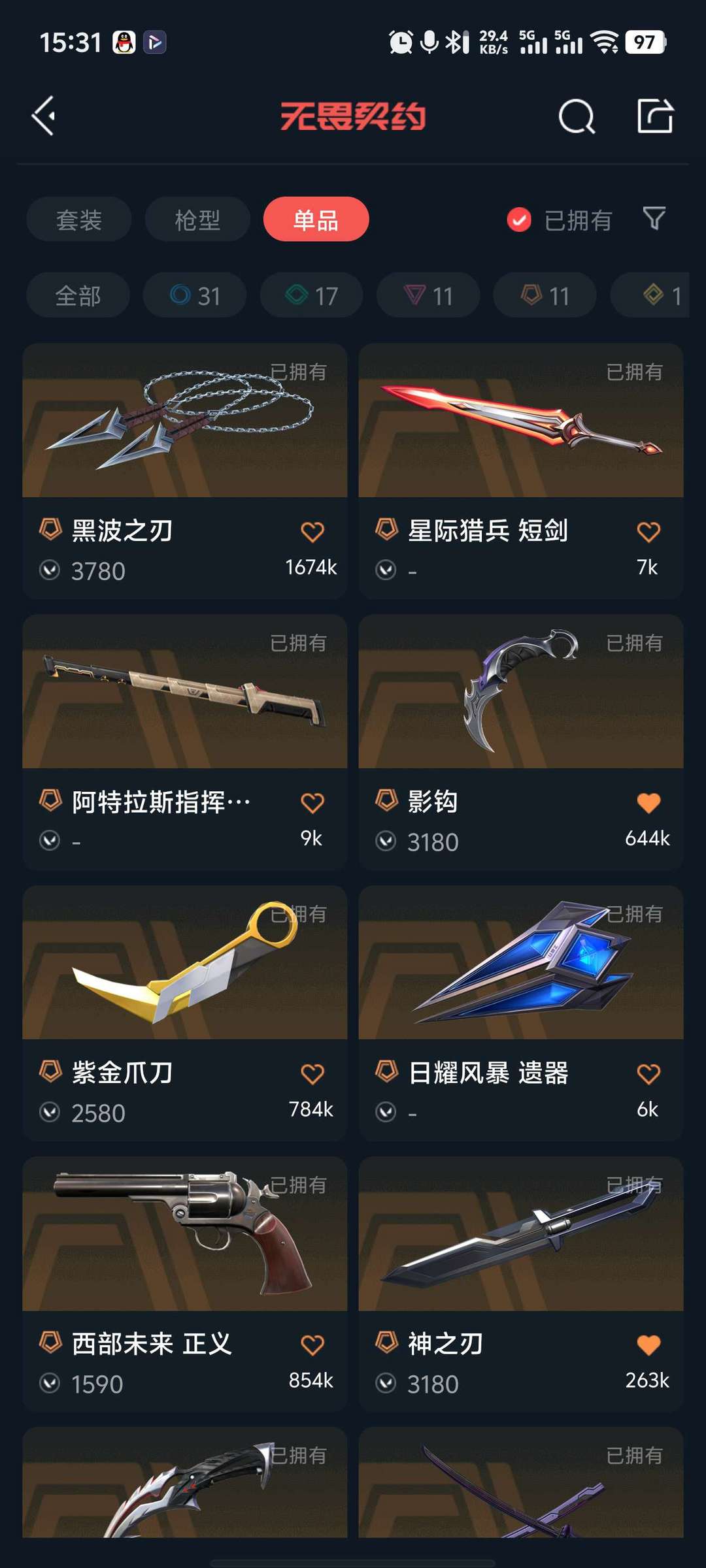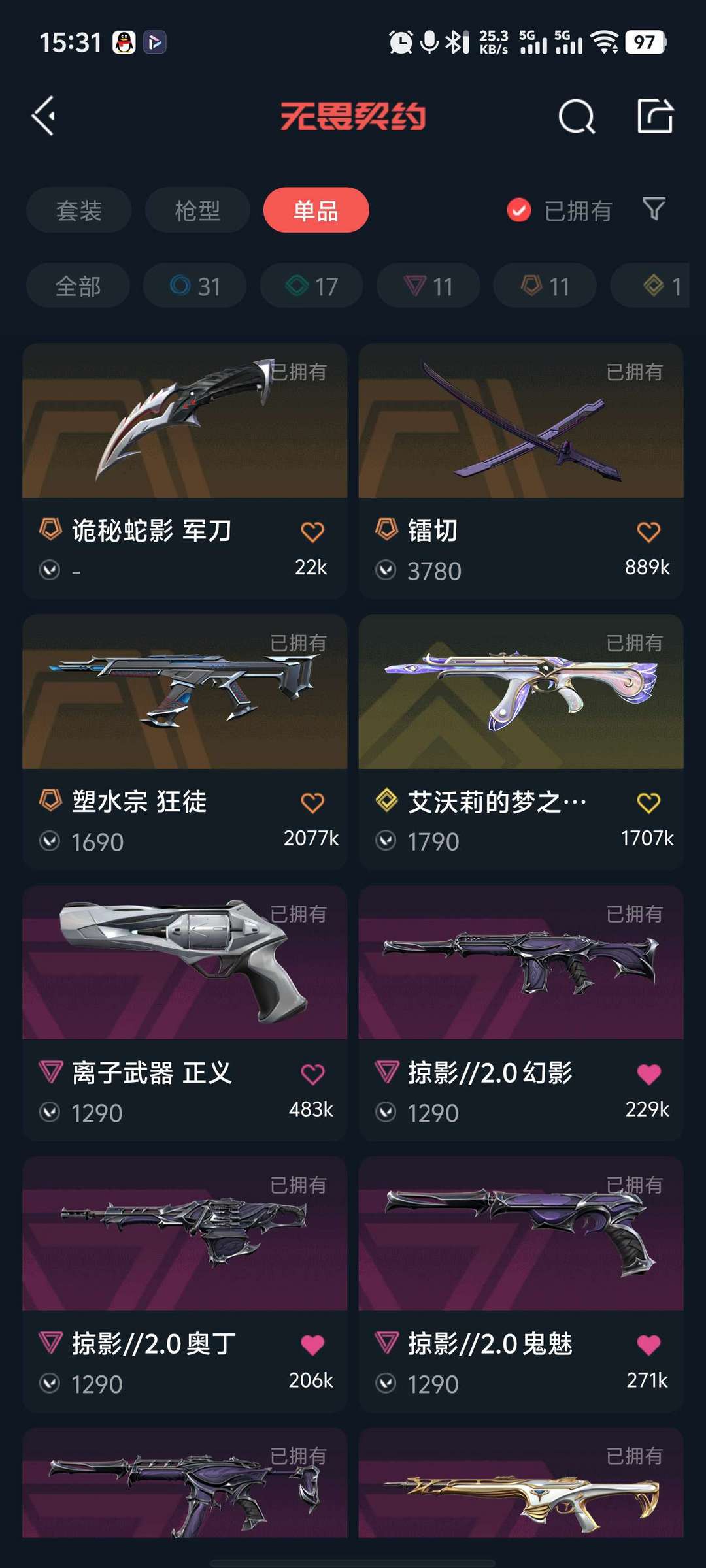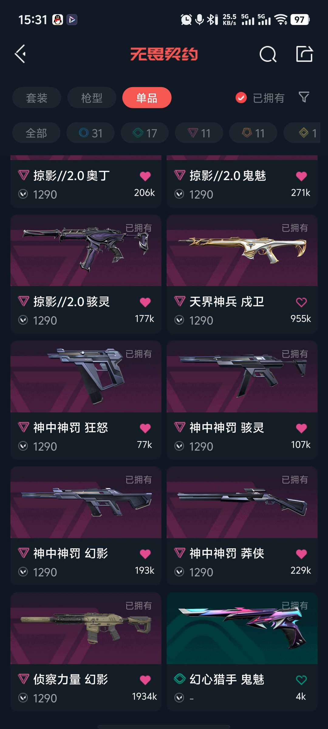 武器皮肤数量:71