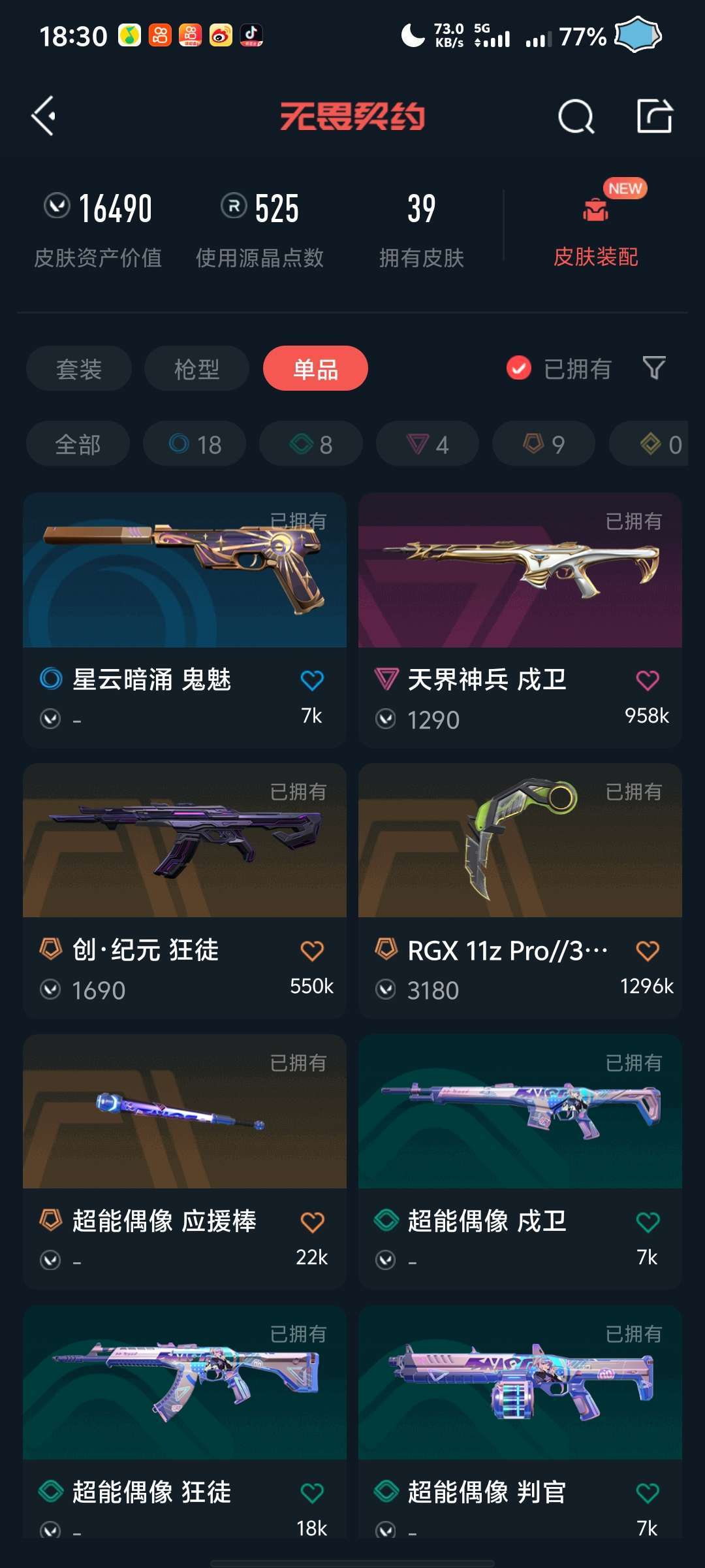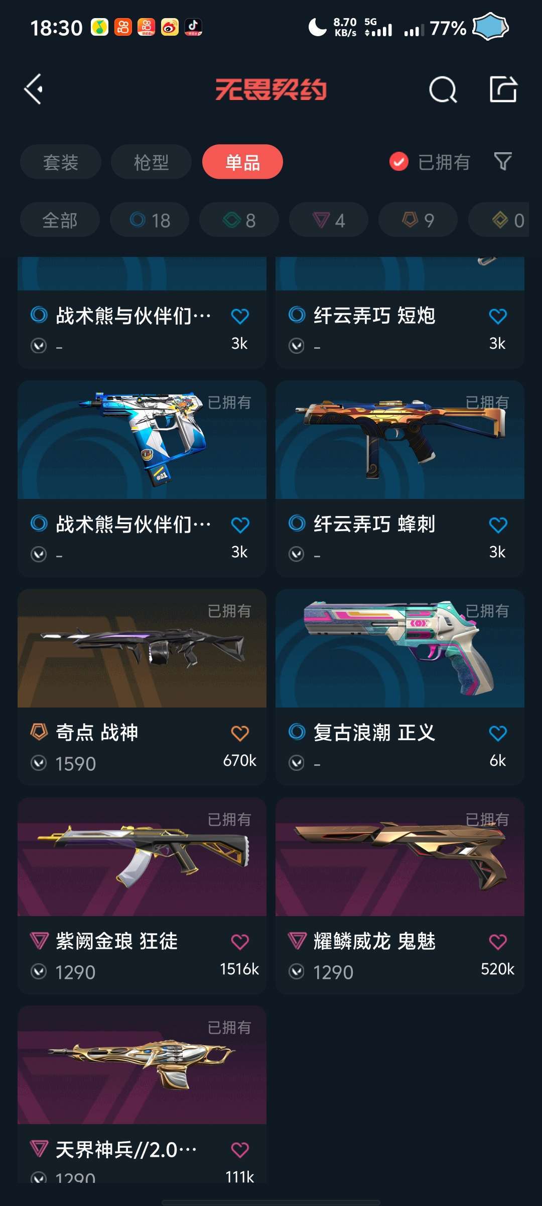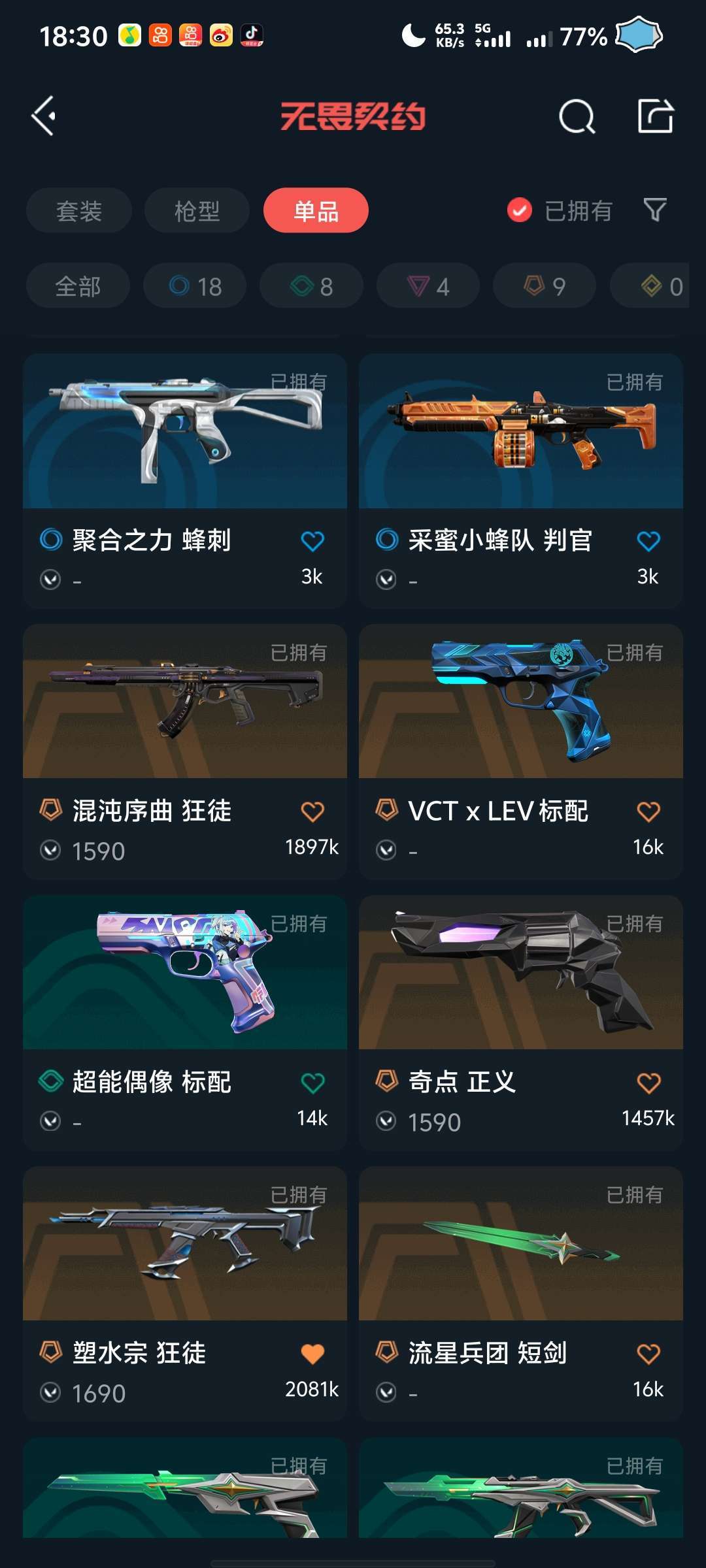 装备描述:塑水宗,紫金,创世纪,馄饨狂徒 vct标配 龙鬼魅 奇点正义 显卡爪刀 奇点战神 天界奥丁 天界戍卫