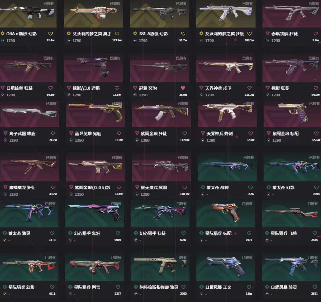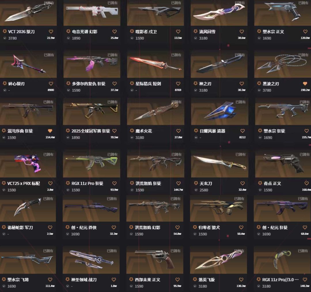 12万库vct篆刀魔术火花黑波刃✨流脓25冠猫猫混沌塑水显卡威龙紫金赤焰ak✨781电音颗秒流脓m4