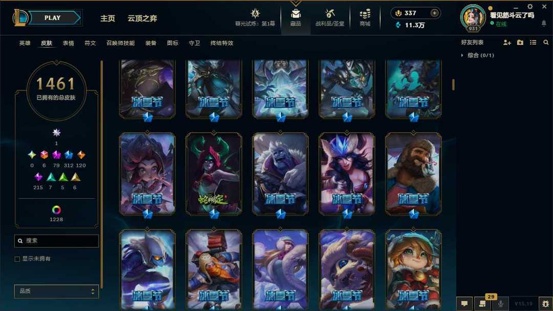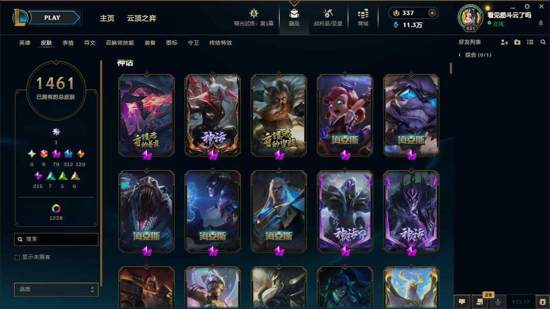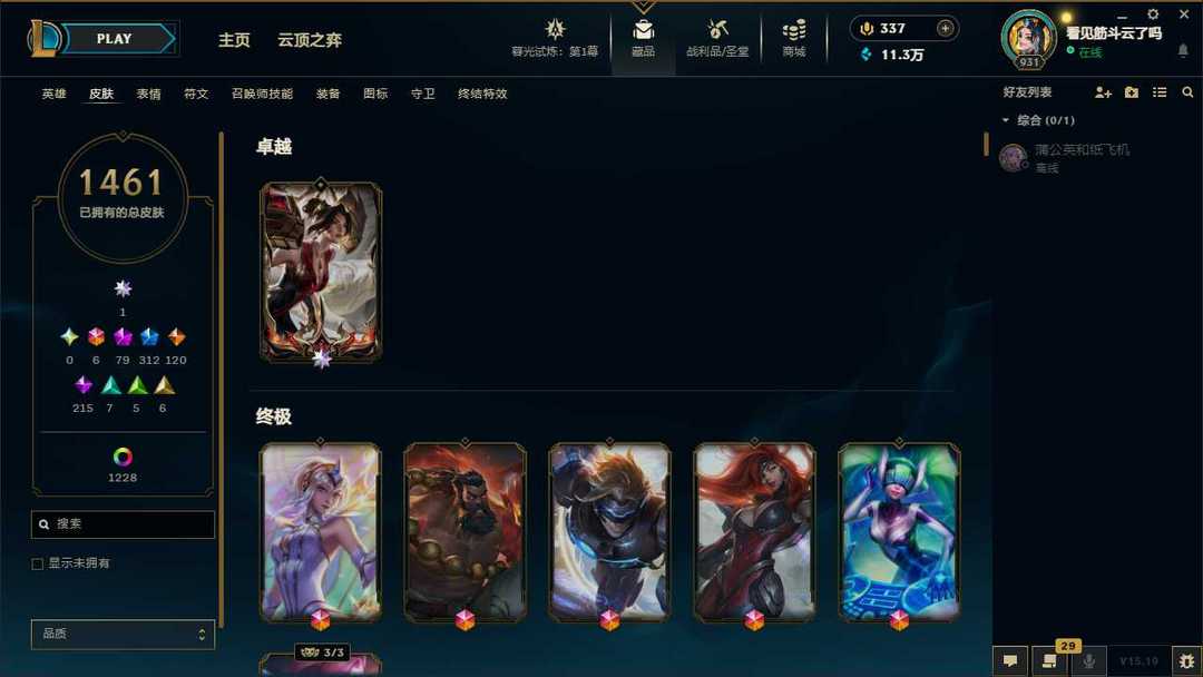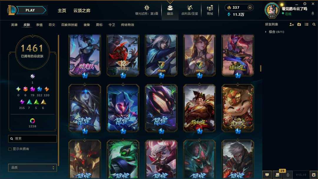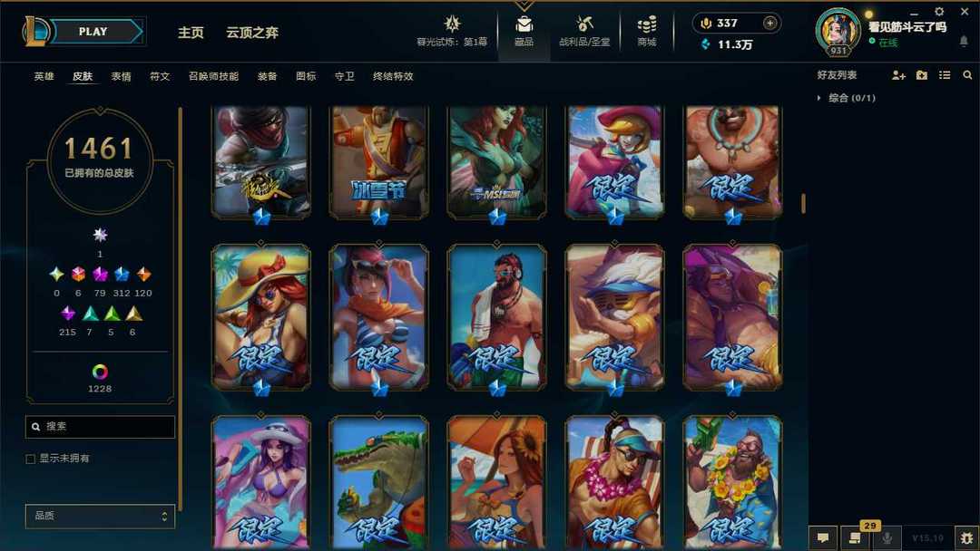 【小天】2700皮♥1461原皮♥1228炫彩♥79神话♥47臻彩♥312限定
