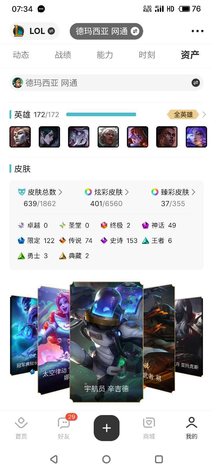 英雄多,皮肤有很多好看的,可玩任何模式。完美带妹神豪号,需要请下单,请勿挂机开挂。