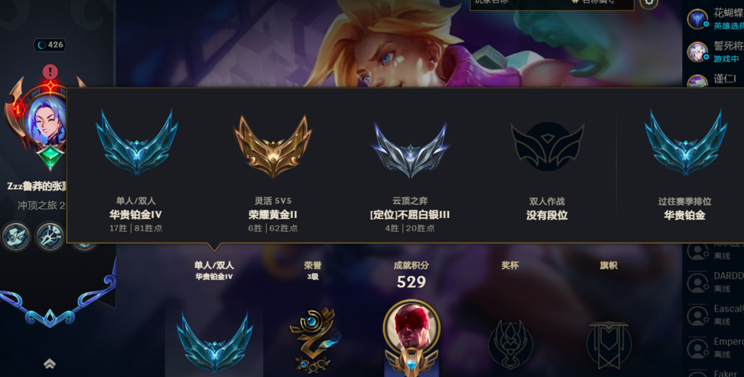 游戏区服:英雄联盟-联盟五区-无畏先锋