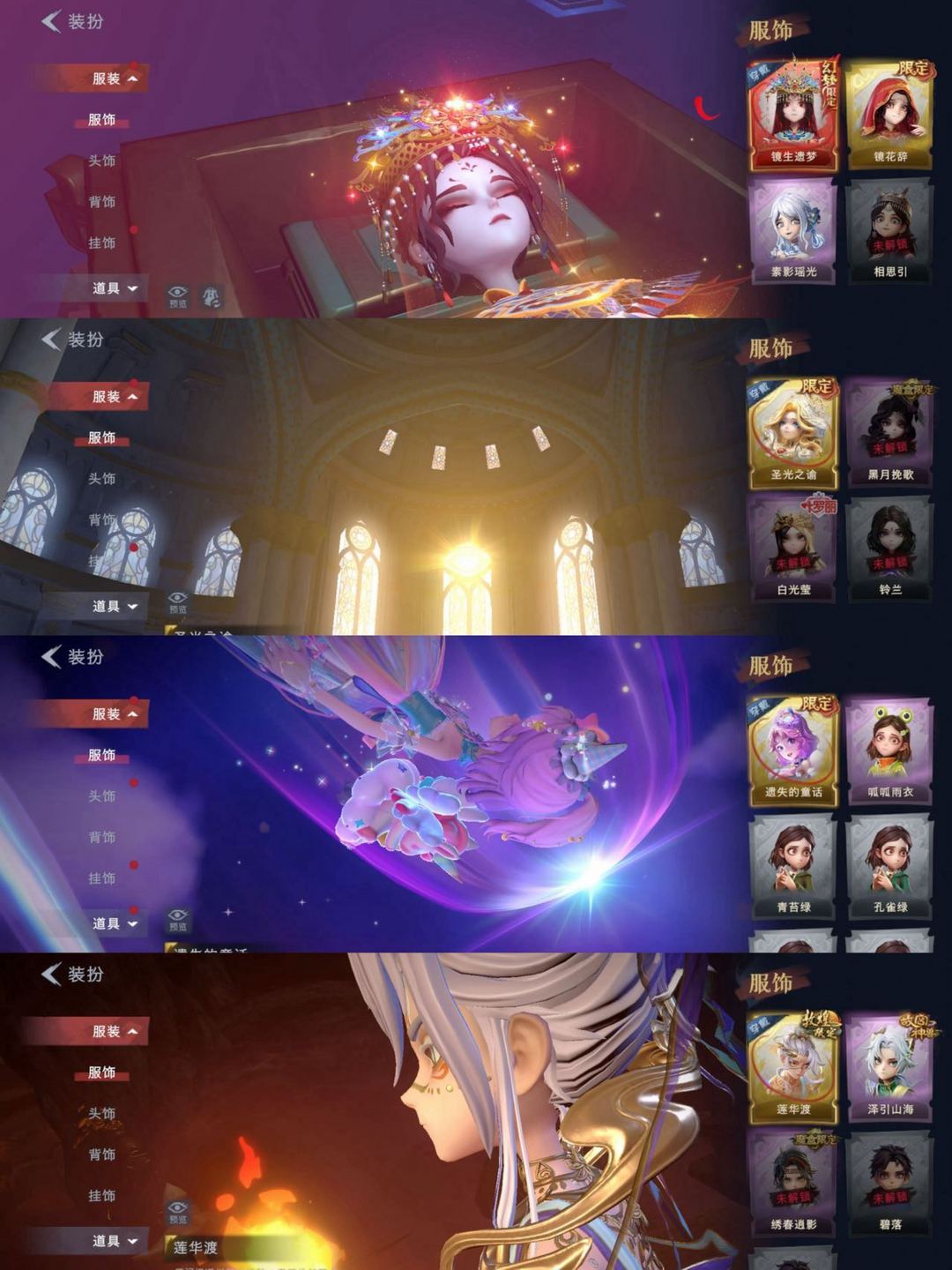 装备描述:【幻梦皮肤】巫铃儿-镜生遗梦 【金色皮肤】逍遥-莲华渡、薇薇安-圣光之谕、小黄-遗失的童话、巫铃儿-镜花辞 【紫色皮肤】爱丽丝-甜梦派对、零-搬开山、薇薇安-仙锋小姐、莉莉-莓果陷阱、莉莉-除妖小师妹、薇薇安-黑月挽歌、阿念-王子与骑士、莉莉-情公主、爱丽丝-冰公主、薇薇安-白光莹、巫铃儿-素影瑶光、爱丽丝-丝缕哀歌、逍遥-绣春逍影、小黄-呱呱雨衣 【道具皮肤】长鞭-飞天绫、摸金符-花落精绝、长枪-荆棘、除颤仪-弦外之音、刺刀-碧络琅环、黄牛能量饮料-青玉抱丹、音响-鸣沙鼓、急救包-蔷薇物语、喷气背包-乘风溯雪、电击枪-甜蜜泡泡枪、铲子-龙鳞、夜视仪-金丝眼镜、音响-happy猫、传送按钮-昆仑镜、专业手电-云端梦想计划、葫芦-伏妖塔、桃木剑-最后的独角兽、额外的背包-飞花令、铲子-圣心之泪、腰包-月下莲台、刺刀-小鲨匕首、传送按钮-幻宠之门、短管猎枪-星光的裁决、长鞭-小狗蛇点点鞭、摸金符-祝祷词、转轮手枪-新星时代、桃木剑-凤鸣九天、黄牛能量饮料-珍珠芭乐莓莓、背饰-潮汐小海兔、背饰-天使的呼唤、背饰-毛球夹子 【美妆】暗夜小恶魔 【载具】惊奇万圣涂装
