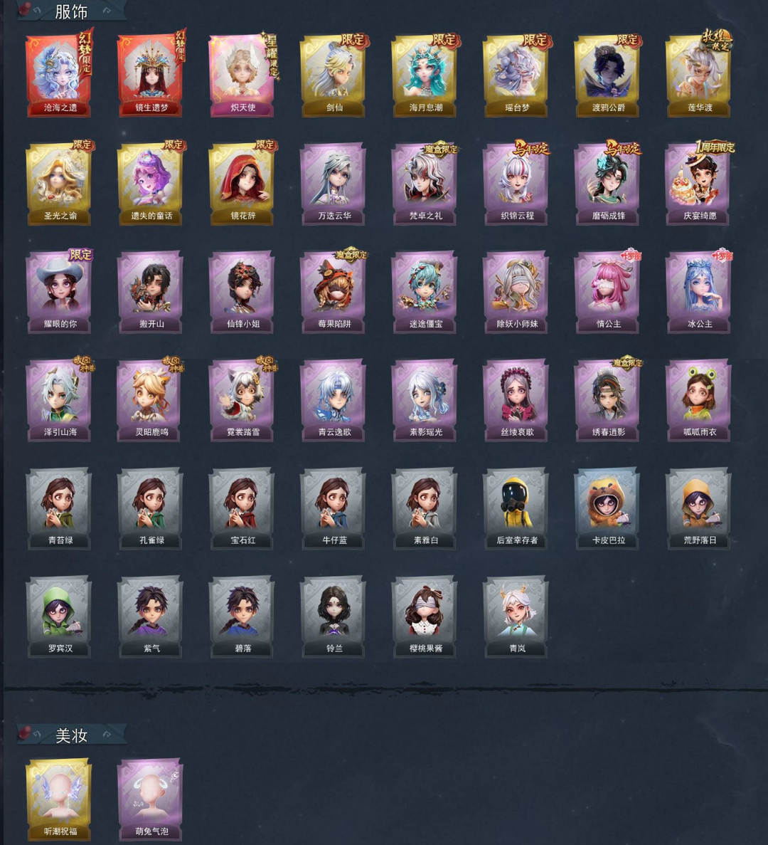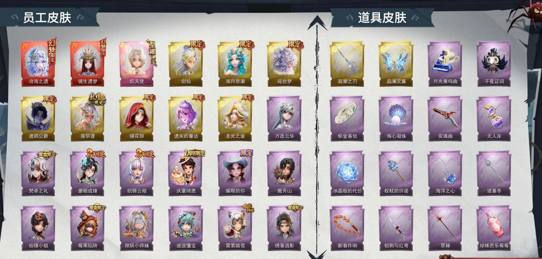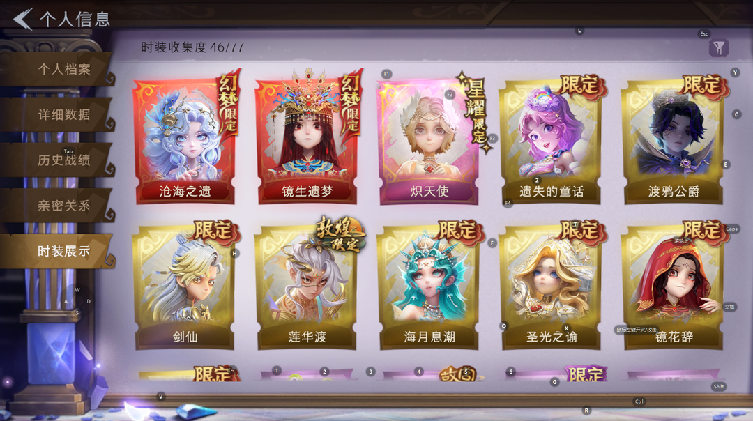 2红1星耀8金24紫皮 镜生遗梦 沧海之遗 炽天使 圣光之谕 剑仙 莲华渡 渡鸦公爵 瑶台梦海月息潮