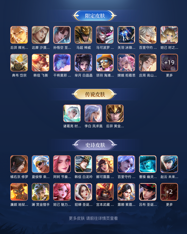 诸葛亮(诸葛亮 时雨天司,诸葛亮 掌控之力);孙悟空(孙悟空 至尊宝);钟馗(钟馗 驱傩正仪,钟馗