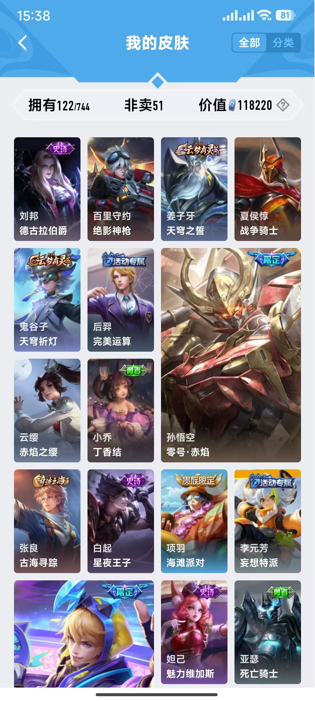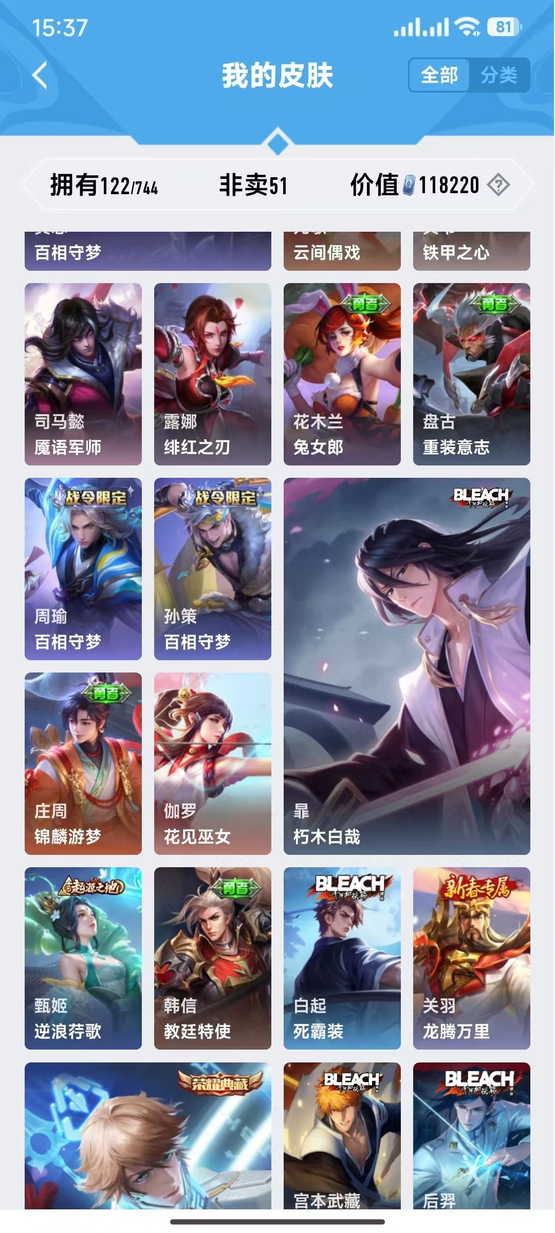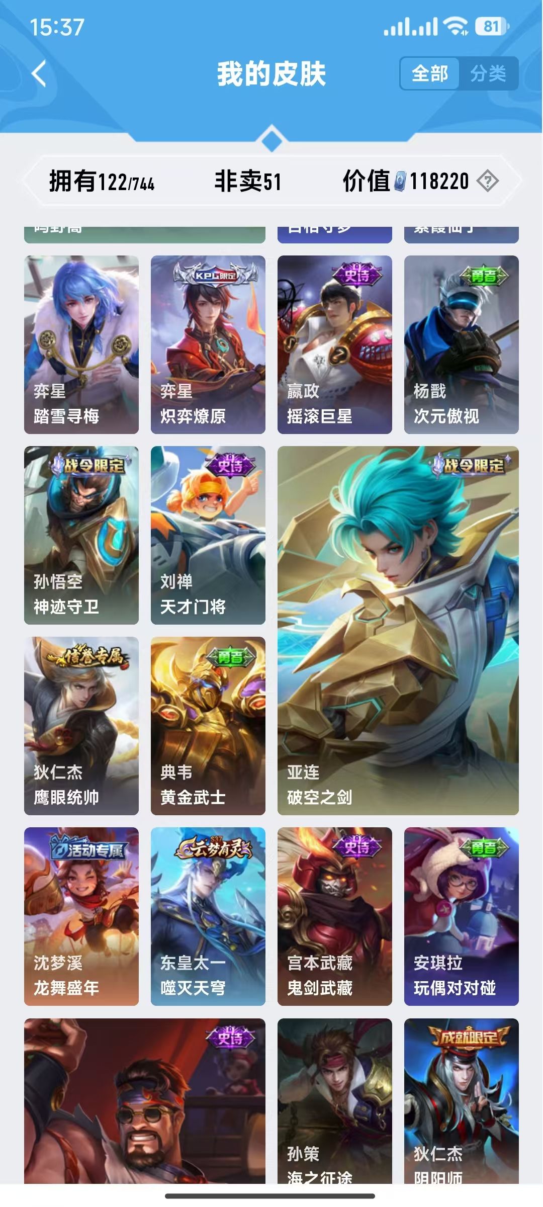 装备描述:马可怪盗基德 鲁班.柯南 暃的无双皮 宫本无双 张飞的无双