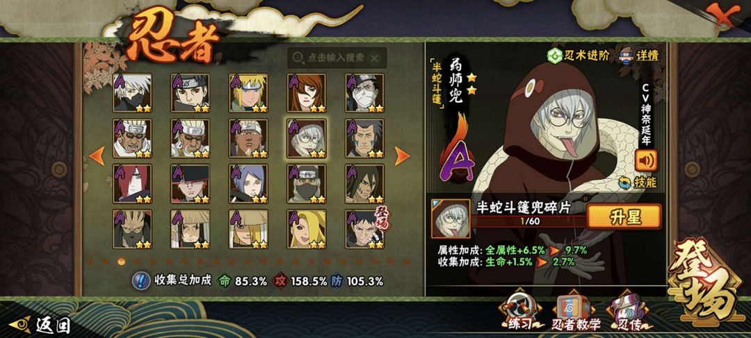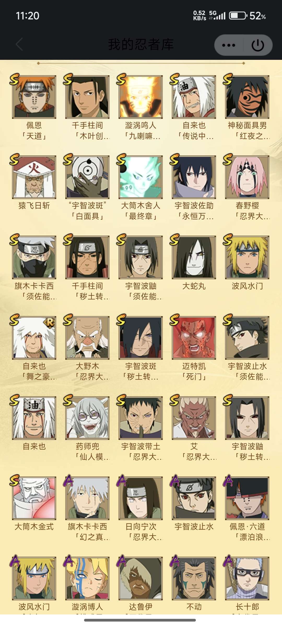 装备描述:从秽土迪到传说自来也都有,不能合成琳和打排位赛,我知道我们火影玩家都是有素质的人