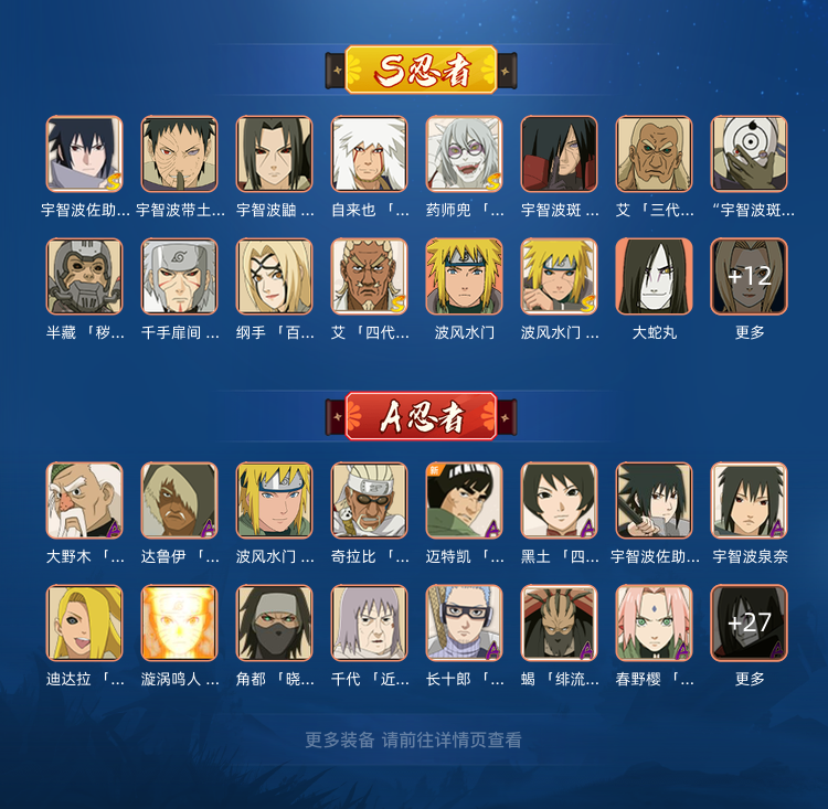 永恒万花筒☑波风水门☑博人桃式☑27S☑37A宇智波斑☑千手柱间☑白面具☑纲手V11☑1300W战力