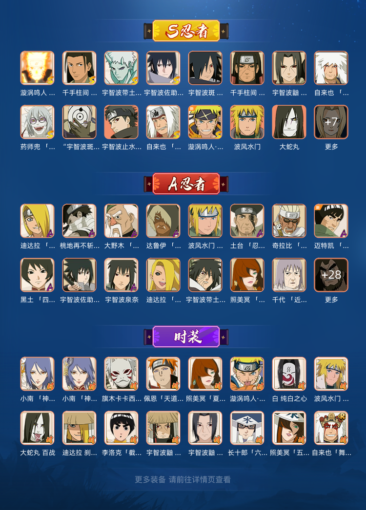 装备描述:火影忍者手游成品号,212忍者,S忍20个,战力1250万+,本服198名,影级2段位,秘卷通灵齐全,时装171件,魅力值高,上手即玩,体验拉满,稳定不顶号,诚信出租,欢迎长期租用~