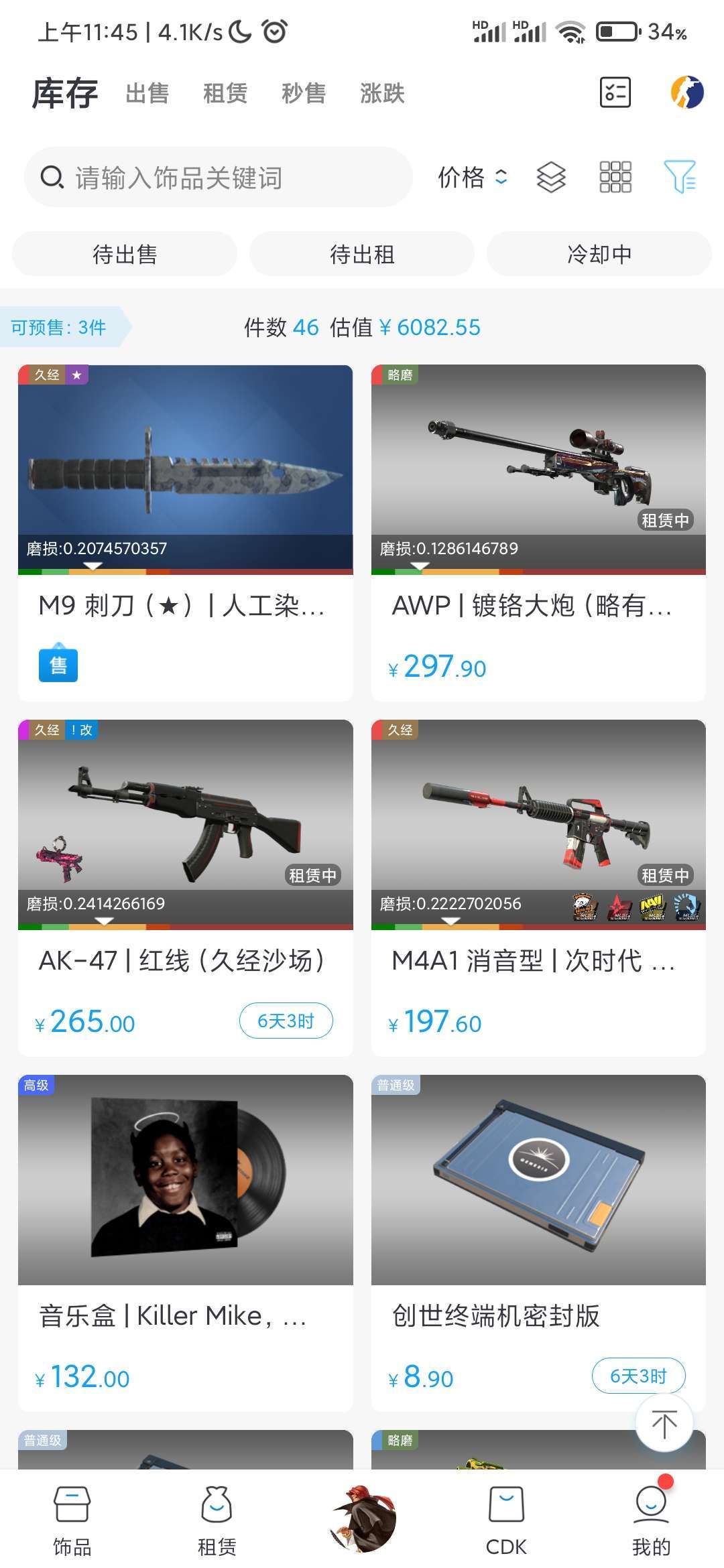 装备描述:m9人工染色,liulang者匕首虎牙,0.25大腕专业手套,awp镀铬大炮,ak红线,m4次时代,killer mike等