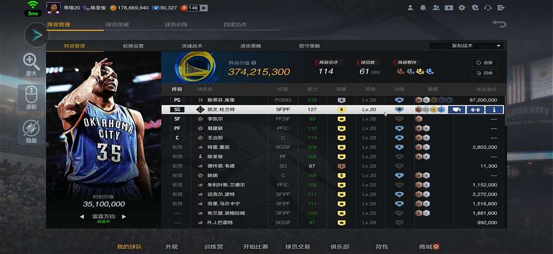 6突小时刻杜兰特,4突库里,6突姚明加满龙之队